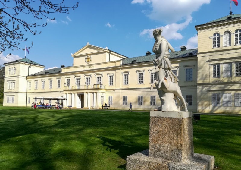 Замок окружен большим английским парком в 100 га, в котором растут ценные и редкие породы деревьев и создано множество романтических беседок и павильонов, скульптур. Этот архитектурный памятник получил премию от Ассоциации сохранения исторического наследства Европы — Europa Nostra.