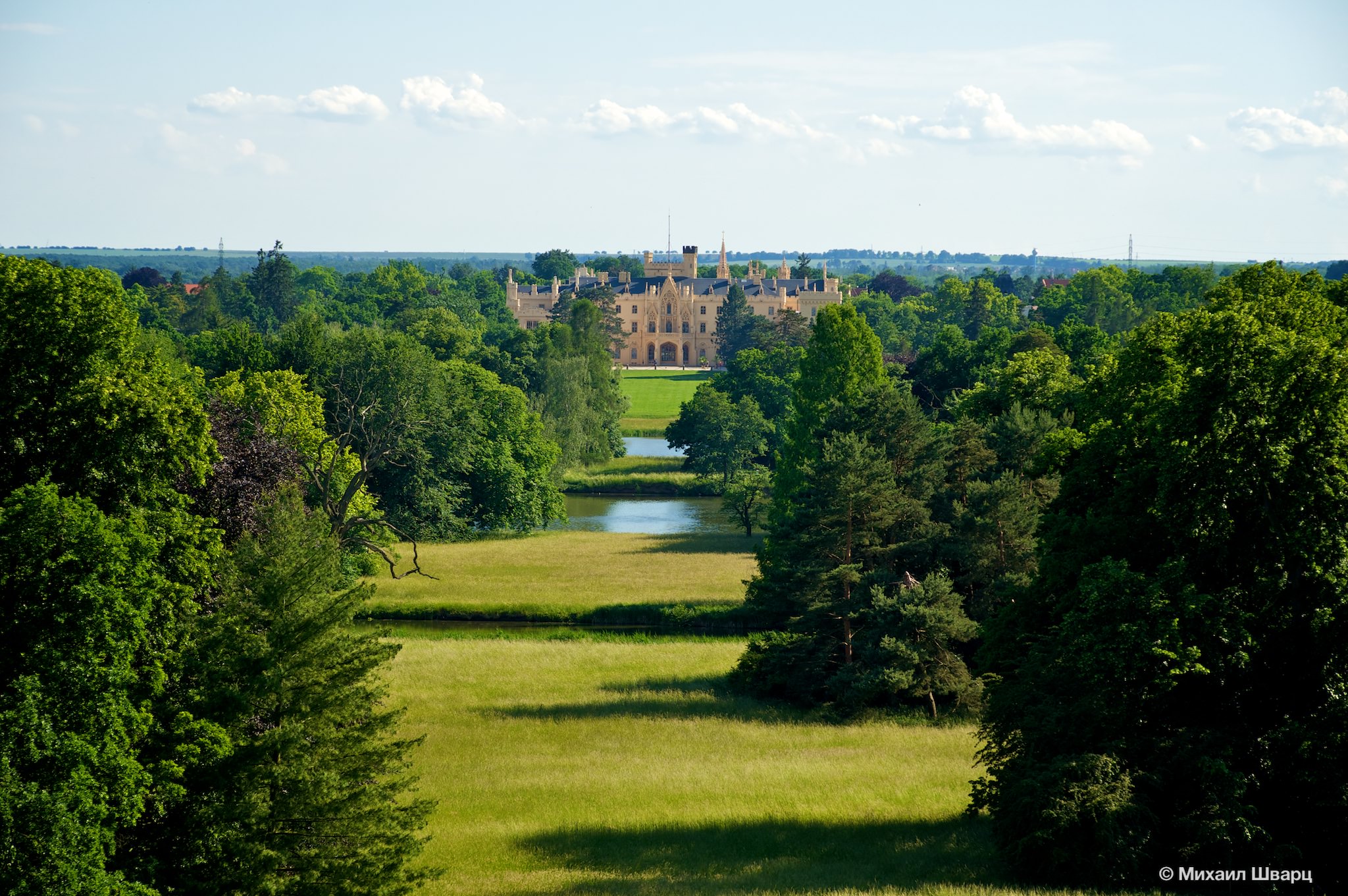 Но мне по душе больше прогулка по парку. Здесь есть несколько маршрутов, но основной – кольцевой. На противоположном конце вас будет ждать башня Минарет. На нее можно забраться за 80 крон и насладиться видом парка, а так же границей с Австрией.